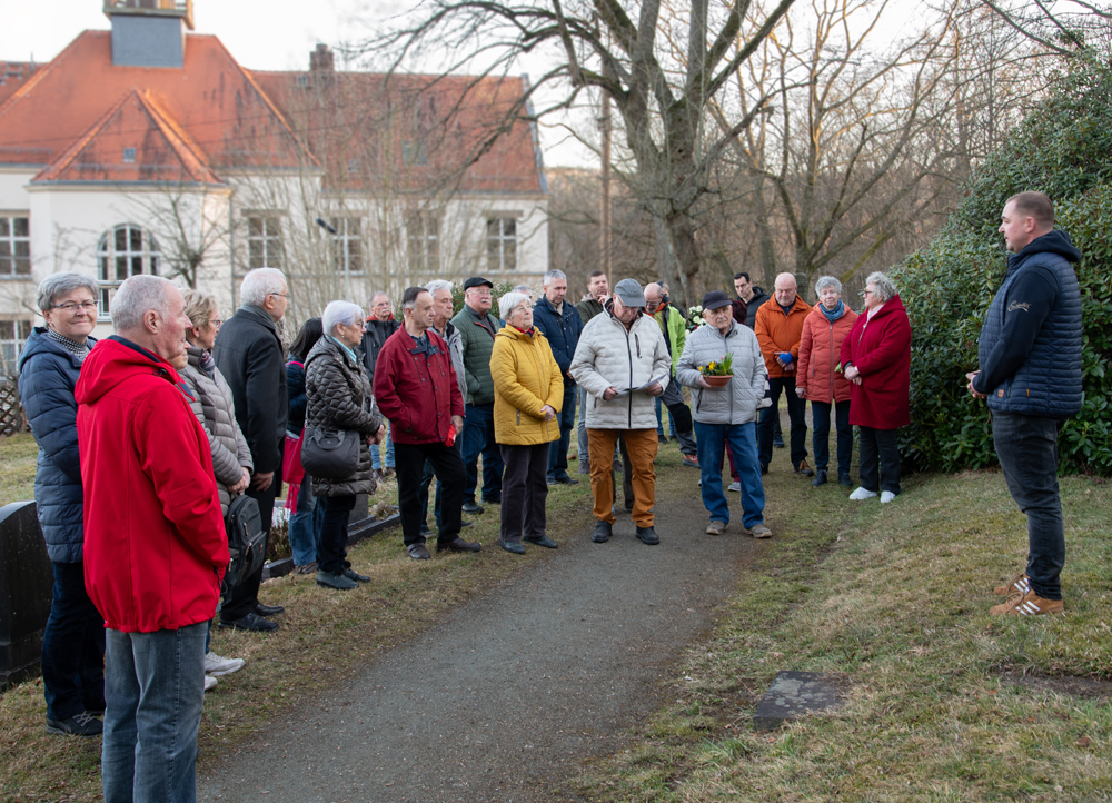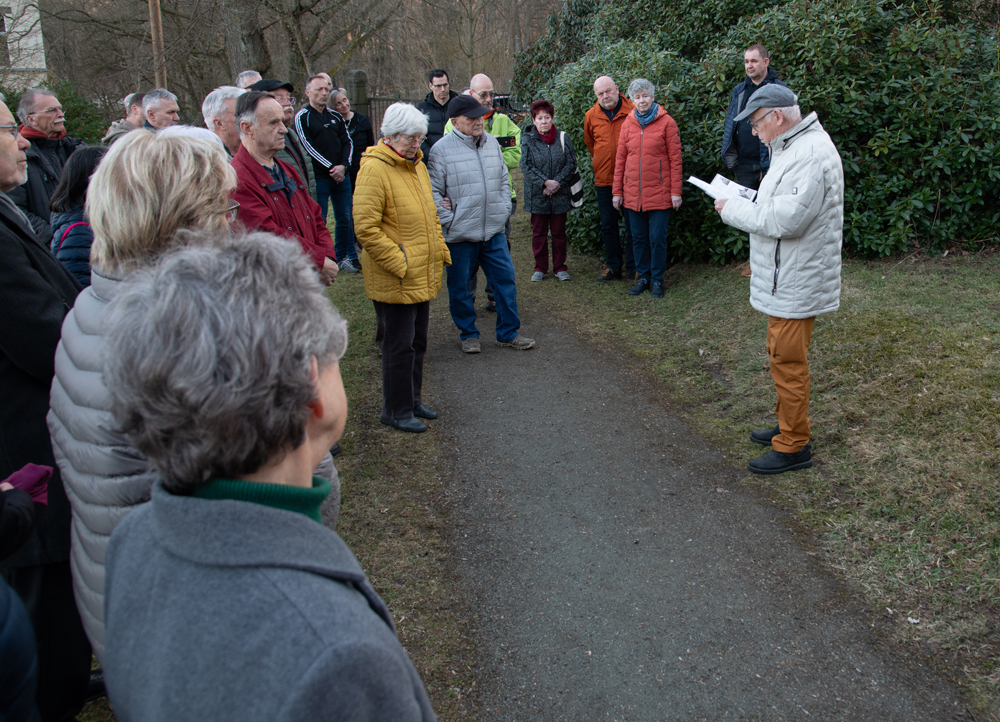 Anlässlich des 81. Jahrestages der Bombardierung Einsiedels am 5. März lud der Heimatgeschichtsverein auch 2026 wieder zur Gedenkveranstaltung mit Kranzniederlegung am Mahnmal für die Bombenopfer auf dem Einsiedler Friedhof ein.